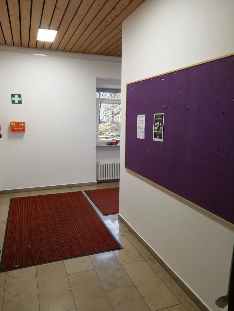 Dank des Erbes ist es uns gelungen, absolut notwendige Renovierungsarbeiten im Oktober zu beginnen. Nach dem Gang und der Garderobe wird nächstes Jahr zumindest der Boden im Saal renoviert werden. Wegen einer Renovierung der Toiletten sind wir in Kontakt mit dem Vermieter.